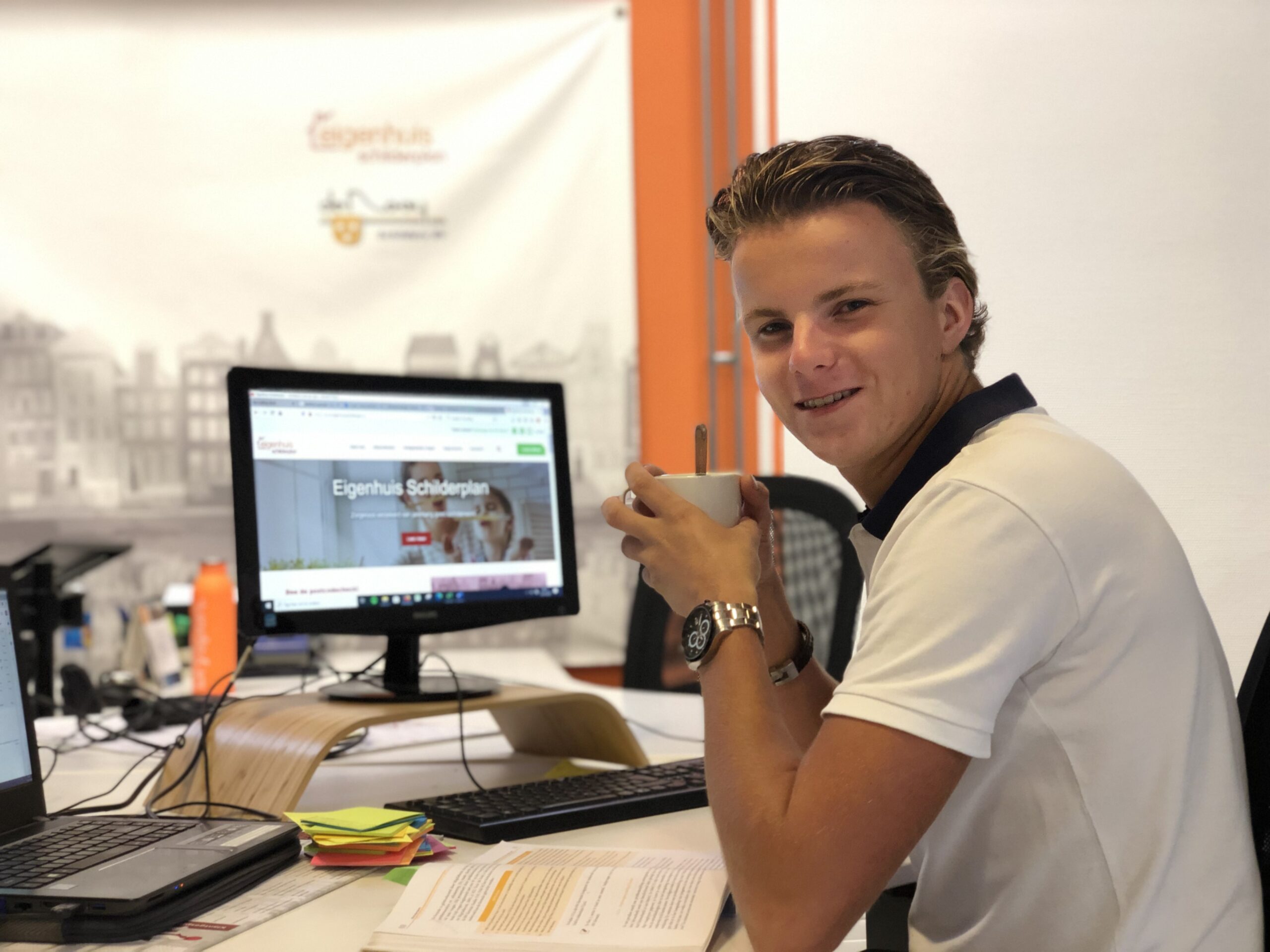 Dat ik in het schildersvak terecht ben gekomen is dus toeval, maar dat ik bij Eigenhuis Schilderplan terecht ben gekomen niet. Nadat ik inzicht kreeg in de werkzaamheden die hier op kantoor, maar ook op de werkvloer plaatsvinden, en uiteindelijk ook zag hoe hard er gewerkt werd om u, maar ook de schilders te helpen. Wist ik, hier kan en wil ik afstuderen! (Ps. De tweede dag bij Eigenhuis Schilderplan stond ik zonnepanelen te leggen op het dak van het kantoor…)