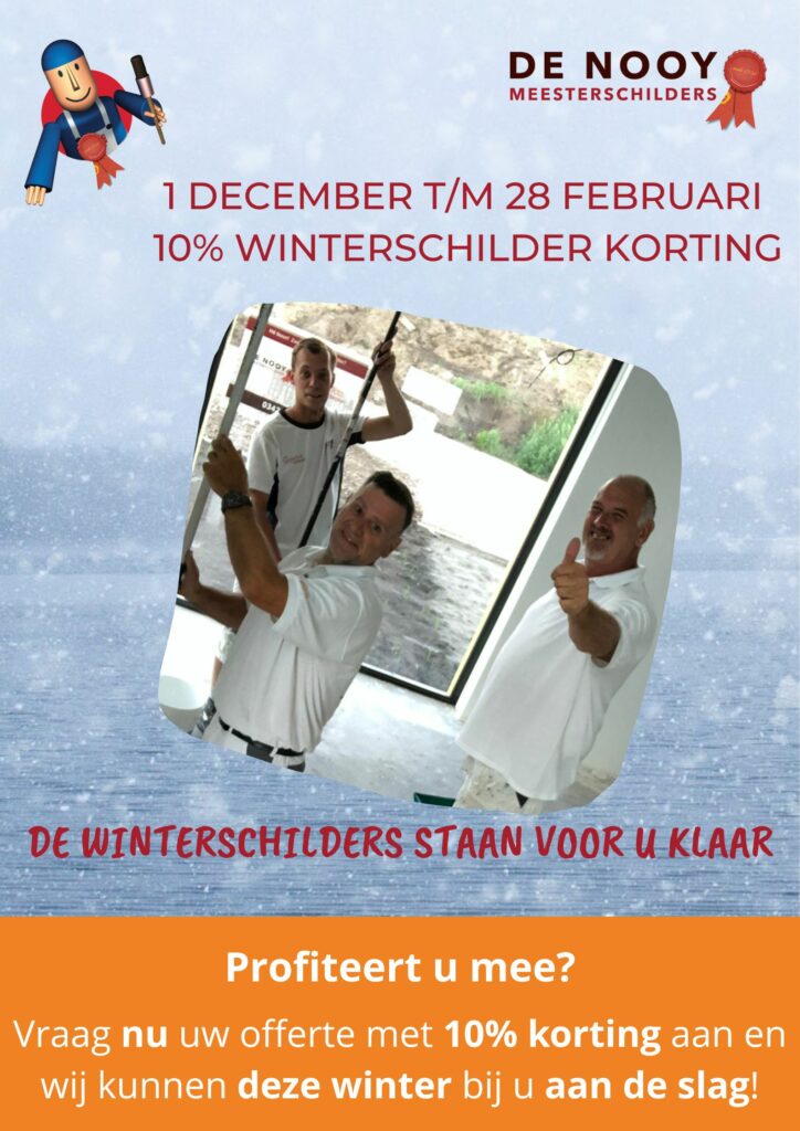 Laat u schilderwerk uitvoeren tussen 1 december en 1 maart? Dan profiteert u van 10% winterschilder korting!